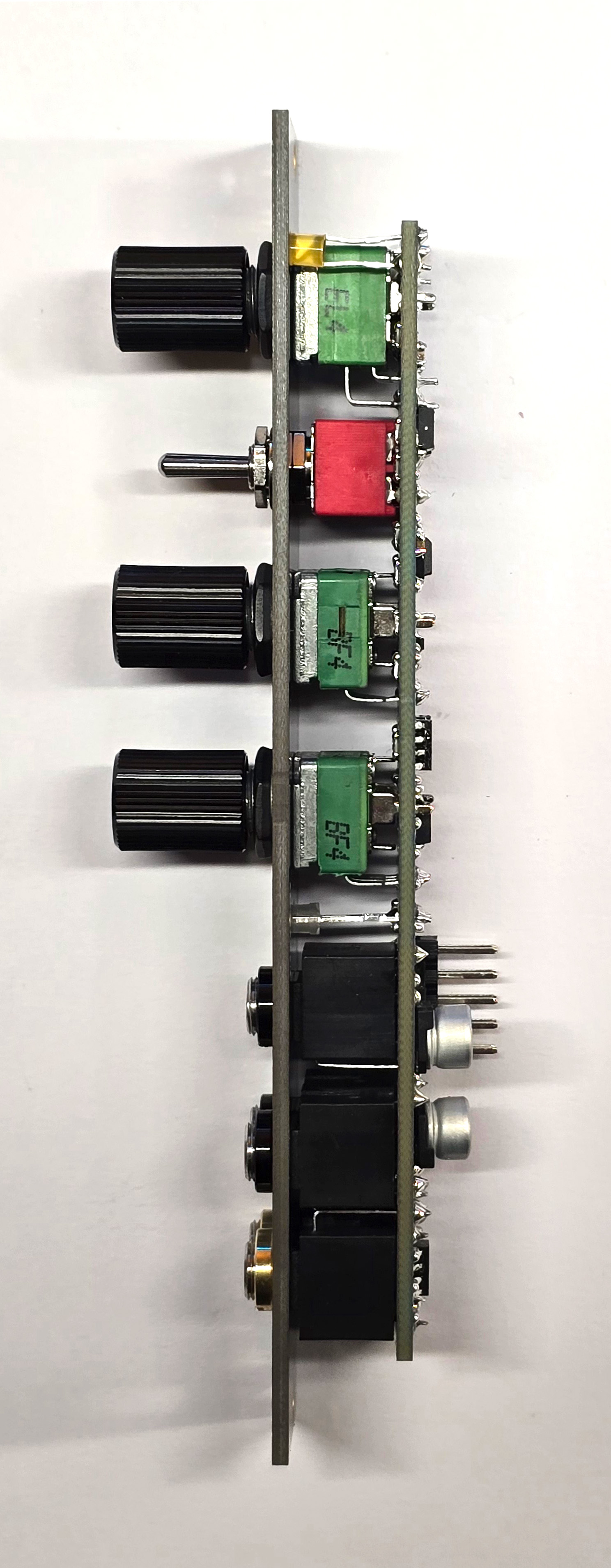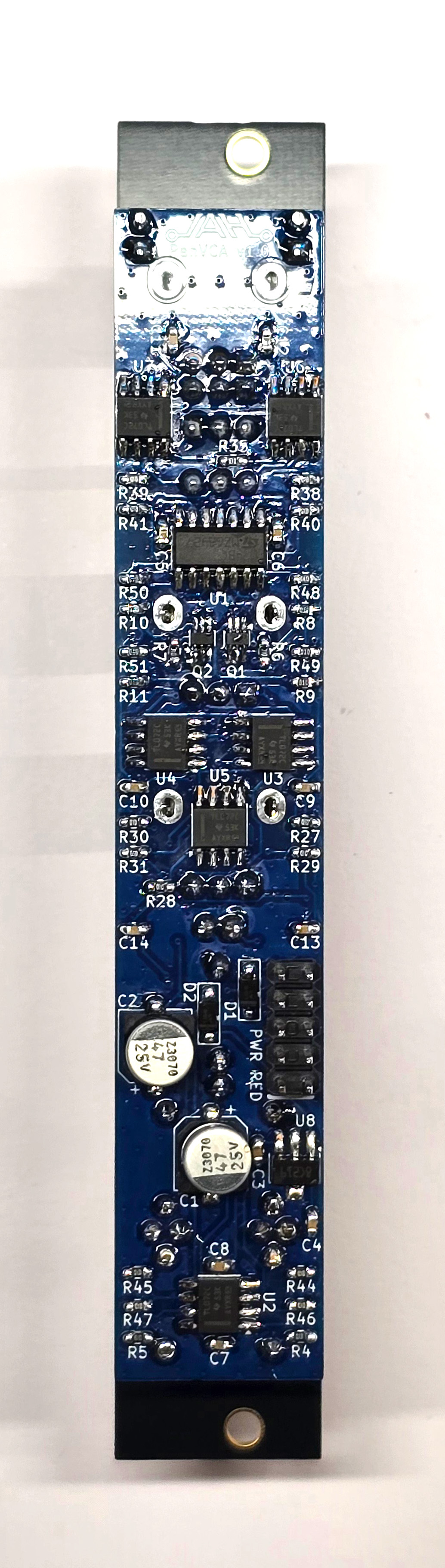 PanVCA is two modules in one: a stereo VCA and a Panner, combined with an attenuverter knob for the CV signal, and a full range offset knob. The mode can be changed with a flip of the dedicated MODE switch. PanVCA is a spiritual successor to the Avalon Harmonics iVCA, significantly improving on its functionality but keeping the classic transistor circuit. Features a golden (ENIG coated) panel.